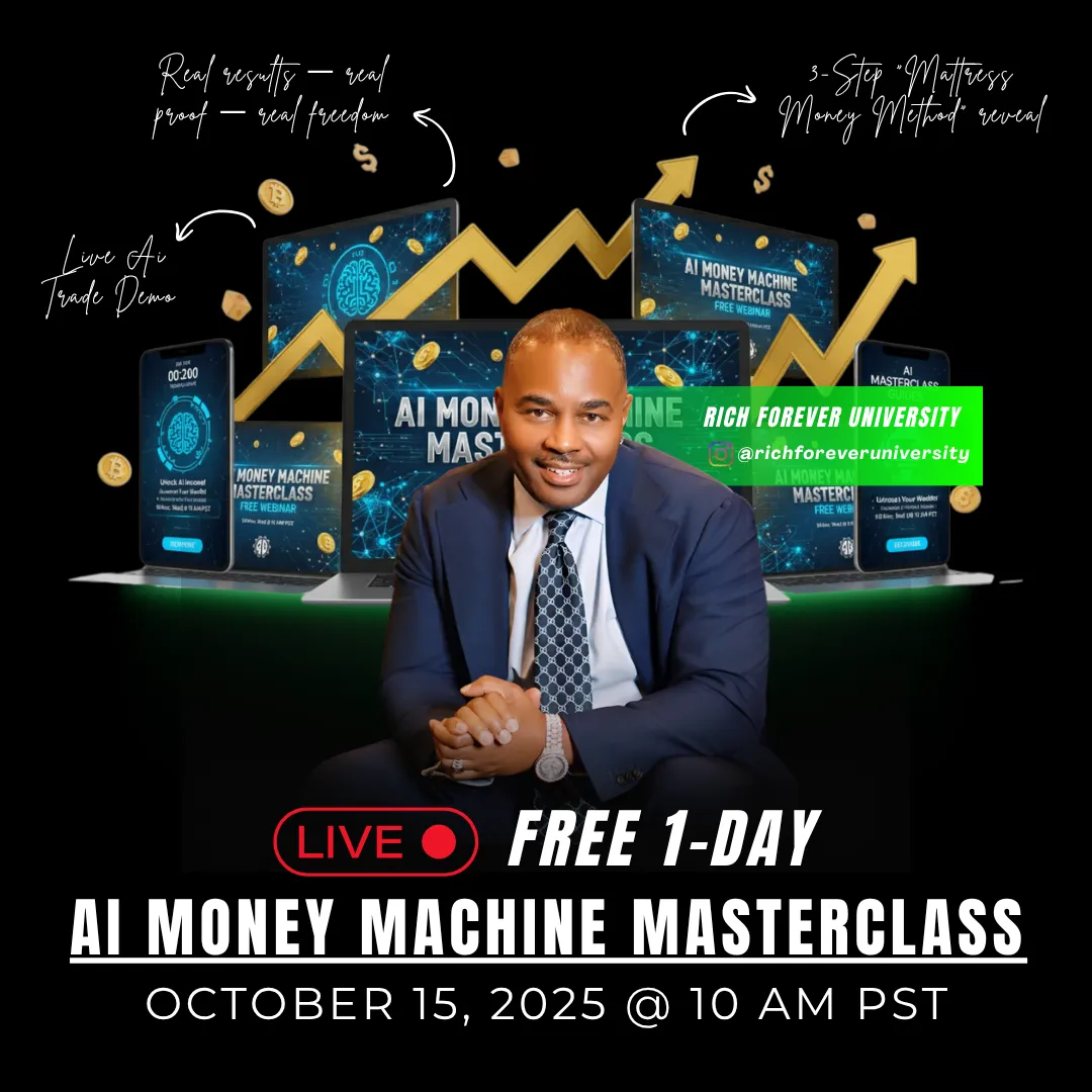 The "AI Money Machine" refers to strategies and tools that leverage artificial intelligence to create new income streams or significantly optimize existing ones. During the webinar, we'll break down practical methods for using AI to build and scale your wealth, whether through automation, content generation, market analysis, or other innovative approaches.